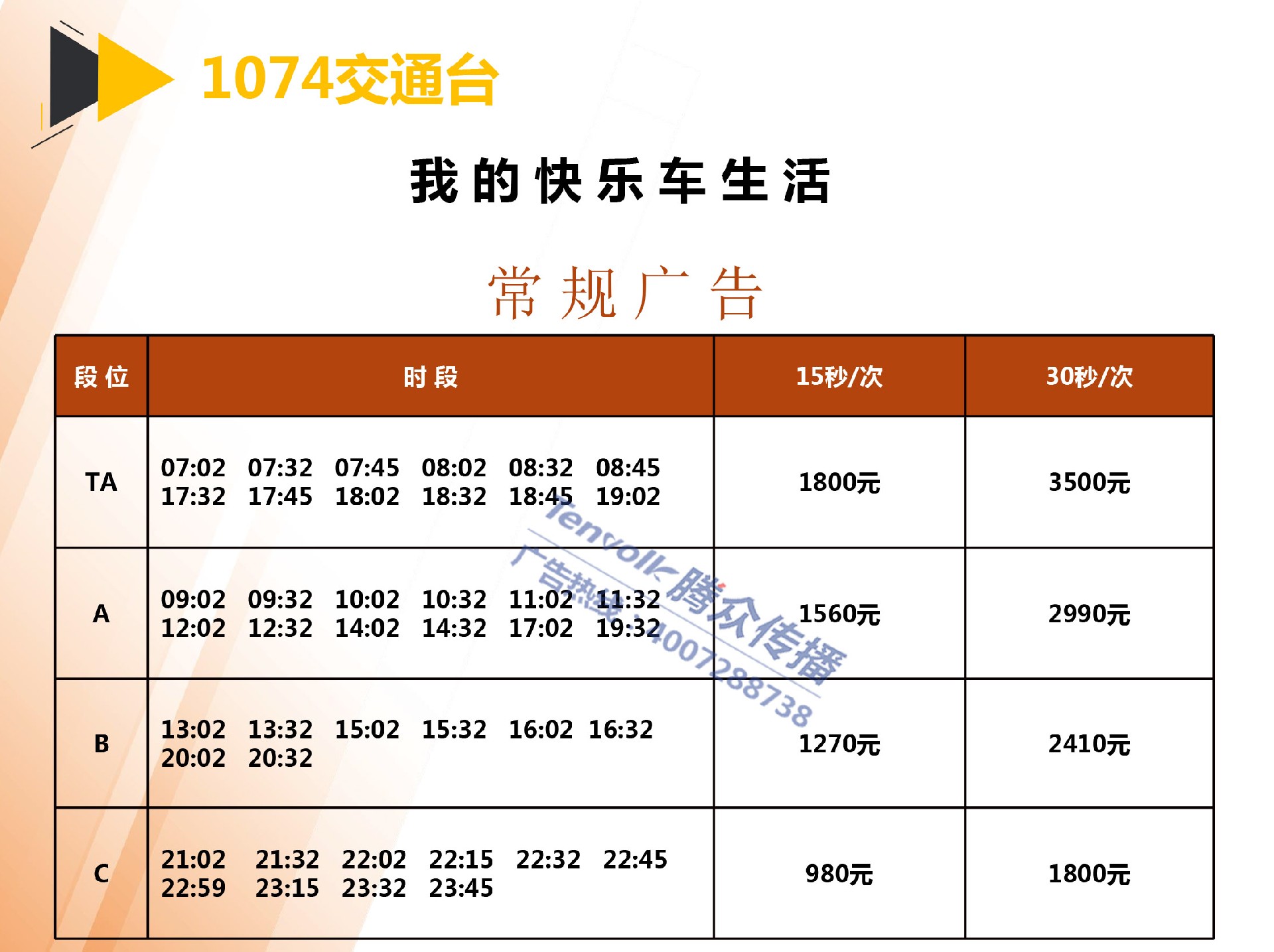 南宁交通广播广告中心,1074交通台以服务南宁大交通为立台之本,秉承我的电台,你身边最有用的电台办台理念,整合市交警指挥中心新路况、南宁消防烈火雄心119、南宁高速路高速喇叭花及时报、北际星800辆出租车对讲系统,信息来源快捷,路况及时播报。想了解更多南宁交通广播广告投放信息,可以拨打南宁交通广播广告中心电话:4007288738