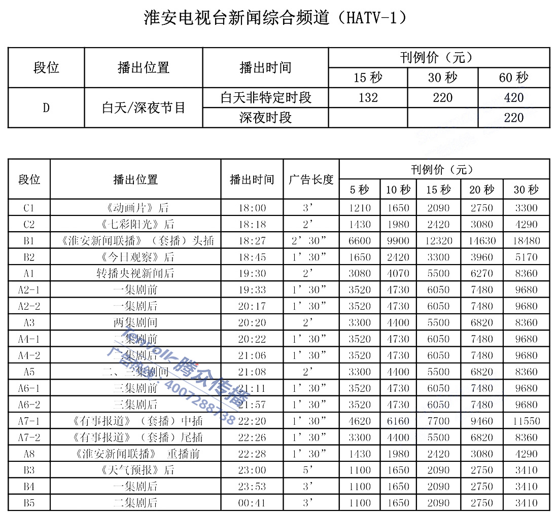 具体淮安电视台新闻频道广告投放价格及广告折扣请咨询客服:400-7288-738