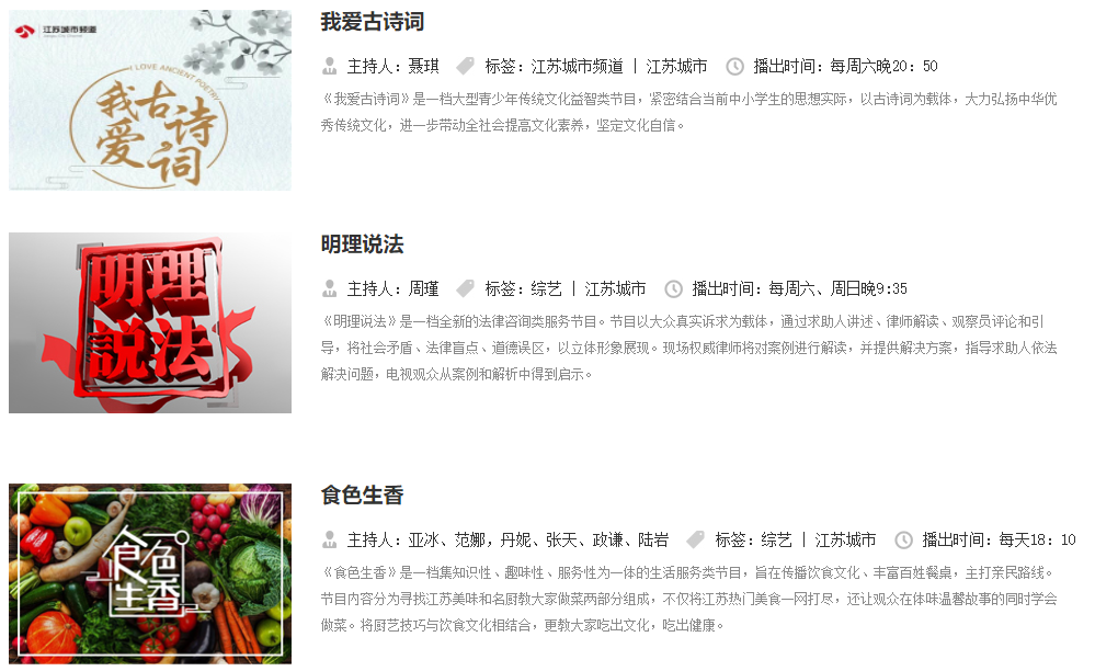 江苏电视台城市频道品牌栏目