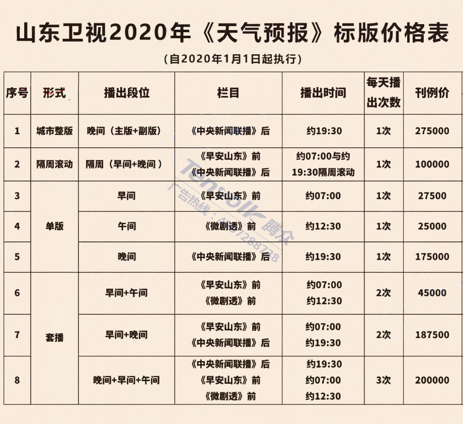 咨询山东卫视天气预报广告价格广告折扣,就找山东卫视天气标板广告中心!广告咨询热线:4007288738